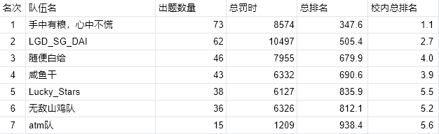 在2023 CCPC网络预选赛中,我校排名139,根据CCPC2023名额分配规则(//ccpc.io/post/305),我校共计获得2个CCPC国赛名额,分布如下: