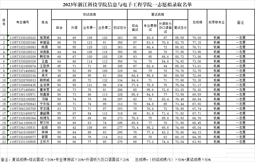 备注:复试成绩=综合面试×50%+专业课测试×30%+外语听力及口语面试×20%