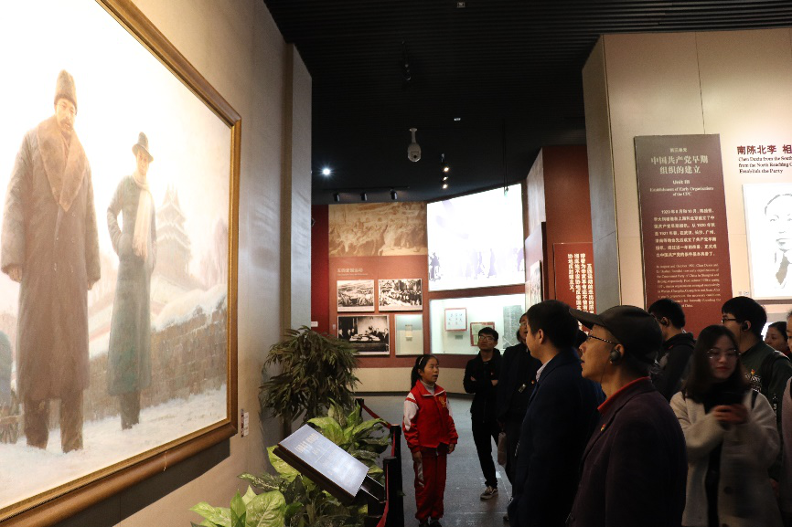 在南湖革命纪念馆,同志们认真聆听讲解员解说,仔细观看珍贵史料,回顾党的奋斗历程,感悟红船精神的力量。南湖红船、虎门销烟、嘉兴火车站等复原场景;共产党员宣言、五四爱国运动资料、战士们穿过的草鞋和用过的食盒;新中国建设蒸蒸日上的图片展示、文字介绍……从中共第一个纲领、第一份决议,到党的十九大报告,中国共产党带领人民,从蓝图到现实,前所未有接近实现中华民族伟大复兴的梦想。