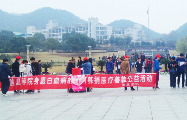 数媒103班张同学于2014年初被确诊患有白血病,并于2月4日入住浙江大学医学院附属第一院血液科接受治疗。病魔突然来袭,加之高昂的医药费给这个普通家庭带来了巨大的打击,更是粉碎了张同学对未来的憧憬与信心。得知消息,信息志协向全校爱心人士发出诚挚的募捐倡议,除了线上支付宝、网银等媒介外,志协还于3月12日至3月17日分别在学校圆形广场、东和、西和、听松食堂发起现场募捐,并收集爱心留言。在校团委、在线赌场