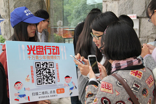 组织工作人员在东西和、听松三大食堂门口设立活动专区,张贴活动海报,引导学生现场扫描“活动二维码”参与微博接力。扫二维码或者参与挑战“光盘公益”就有精美小礼物相送。此活动旨在提高大众节约粮食的意识,引导学生自觉实践节约粮食的号召!从你做起,从我做起,一起光盘,向浪费说NO!