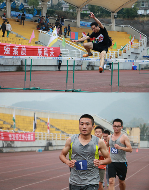 的选手助跑预备、问枪起跑,舍我其谁。男子组4X400米时,第三棒的交接的时候,我们的运动员险些被反超。拼搏之下,位于第四棒的盛发发咬紧牙关,一个接着一个地超越对手,拿下了比赛第二的成绩。是否记得,一次次的奋力跨越,让盛发发同学拿下了男子400米栏的第一;是否记得,咬牙的坚持,让齐世发同学拿下了10000米的第二;是否记得,全力的一跃,让竹楚月同学摘下了女子三级跳的第四。