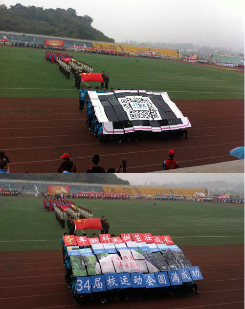 的学子身穿统一的“itee蓝装”,迈着整齐的步伐,精神饱满。他们用50块KT板在主席台前拼接出了三副在浙江科技学院中在线赌场