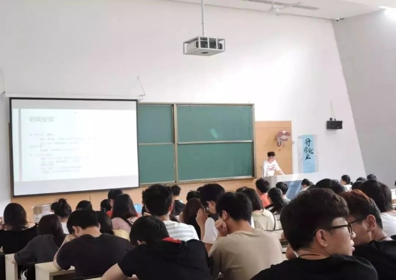学长们基于自身经验给有意向考研升学的同学提出建议。其中陆凯杭学长学长向我们展现了他的人生目标,做一个“T”型学习者:横轴表示接纳与开放、人生的广度,纵轴表示专注与精进、专业的深度。最后用几个小故事向我们讲述了人要静水流深,张弛有度,要抱着沉着之心迎接挑战。胡昊学长先介绍了自己的大学旅程,叙述了找与自己志同道合的伙伴,夯实基础,在实践中学习的重要性。强调了要和老师积极沟通,技术先行,以及和伙伴互帮互助。魏祖昌和潘建锋学长介绍了考研的时间安排和心路历程,勉励学弟学妹朝着自己的目标努力!