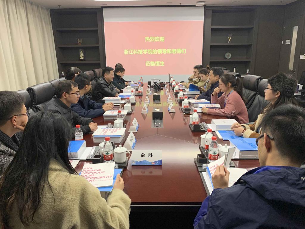 师生代表与恒生电子股份有限公司党委书记周峰会面,进行了交流座谈会。周峰书记向我们详细地介绍了恒生的发展历程,着重介绍了恒生的在线赌场,恒生服务员工的态度和机制,丰富的俱乐部文化活动和业余生活让人印象深刻。最后双方就开展应届毕业生实习、校企合作、产教融合等进行了友好探讨和协商。双方表示在人才培养方面会进一步加强交流与合作。