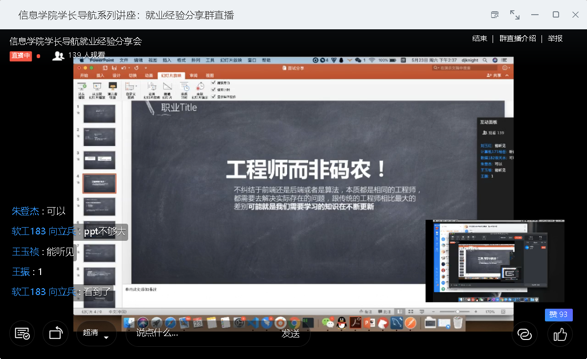 于5月23日下午14点30分举办了线上就业经验分享会。在线赌场