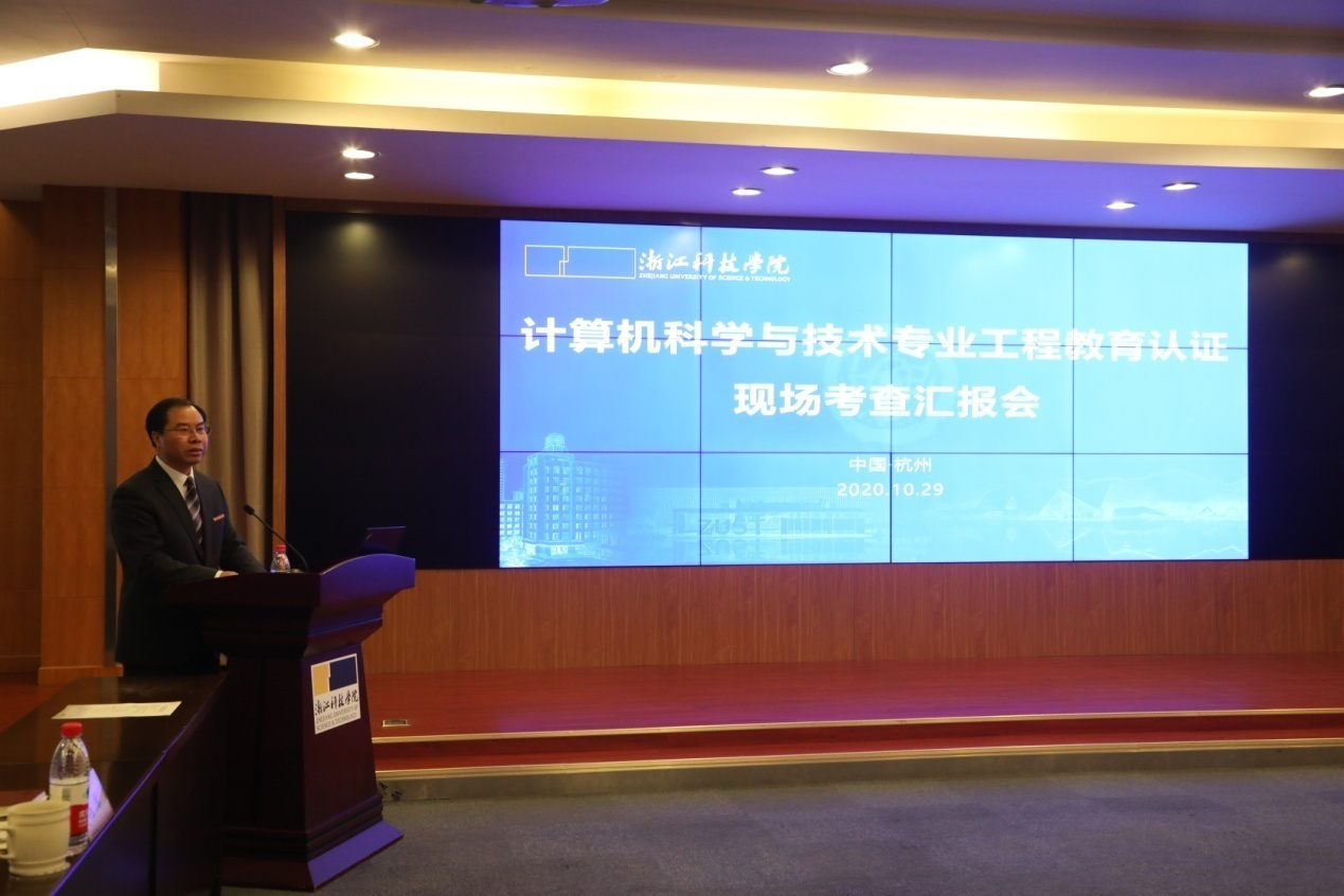 专业基本情况作简要介绍。他指出学校将以专业认证为引领,推进专业标准化、规范化、国际化建设。赵东福重点阐述首次通过工程教育认证后学校对该专业持续改进工作的各方面支持并表示学校将全力配合专家组的考查,确保认证工作顺利进行。