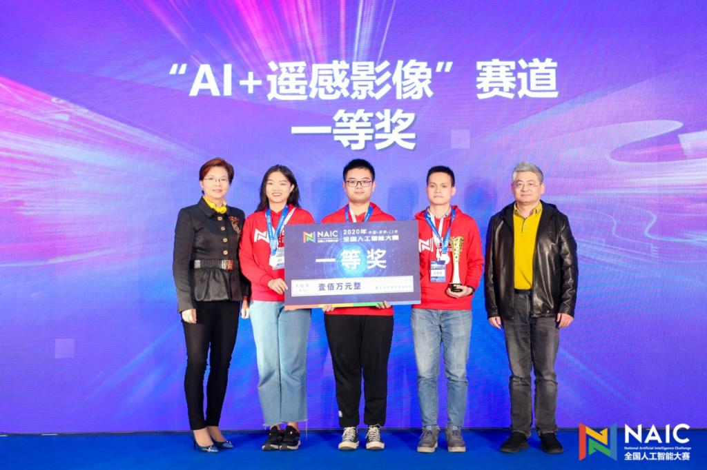 系研一在读)负责的“Amadeus”团队以领先优势夺得AI+遥感影像赛道的冠军,获得100万人民币的奖金。中国工程院院士于全和星河控股集团副董事长姚惠琼为冠军团队颁奖。