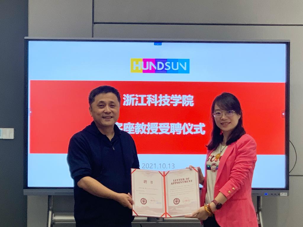 会后,学院党委书记张蕾为恒生党委书记周峰颁发了我校客座教授聘书。(施建腾)