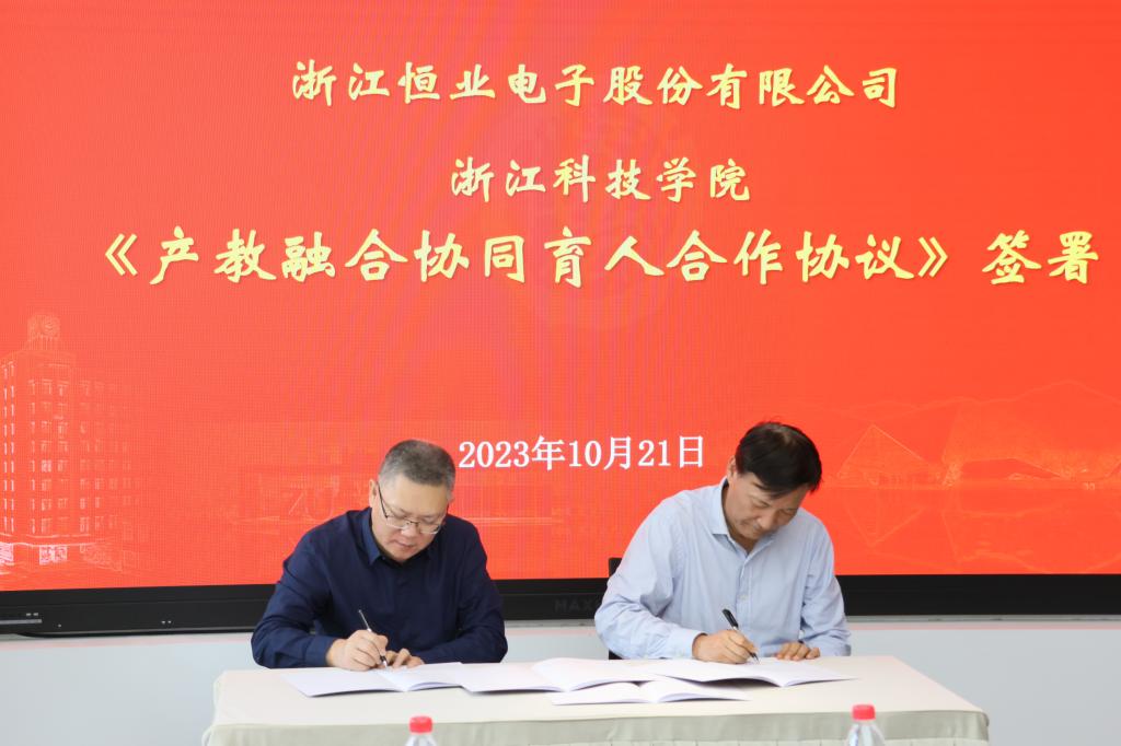 与浙江恒业电子股份有限公司签署系列产教融合协同育人合作协议,共同推动产教融合,为学院人才培养和企业发展提供强有力的人才支撑。