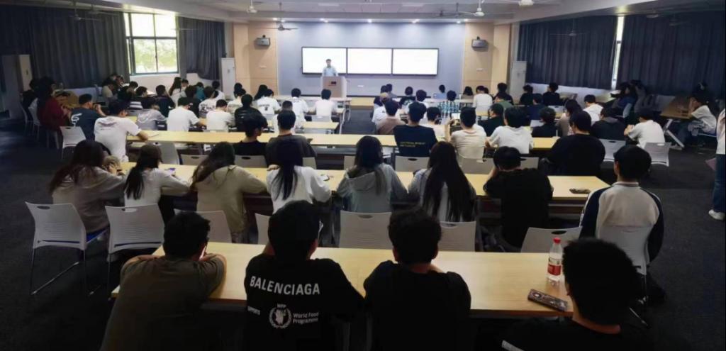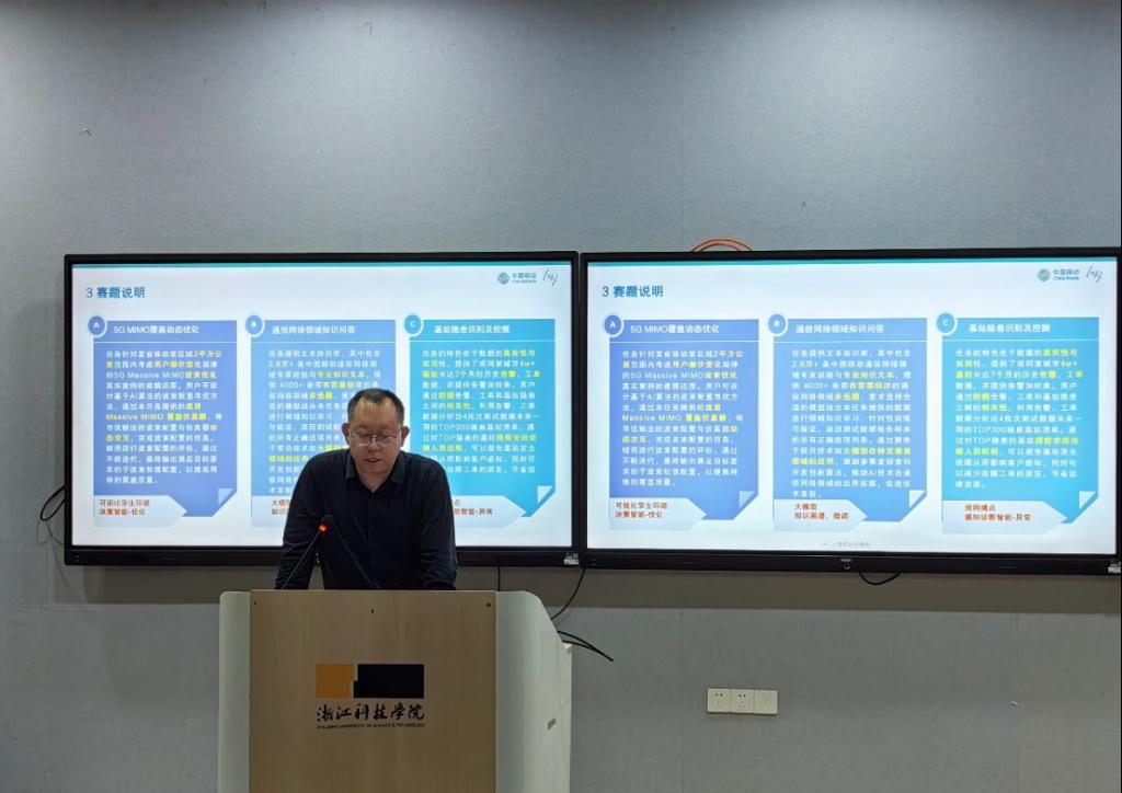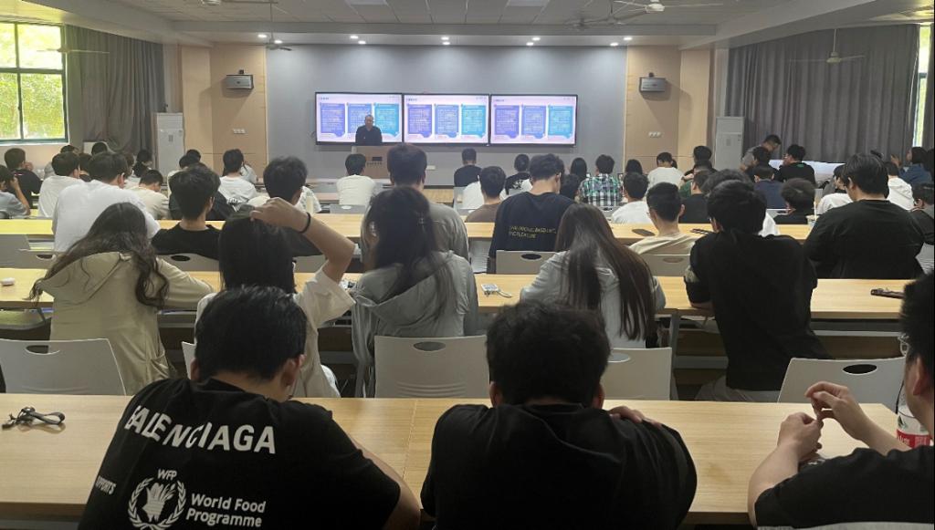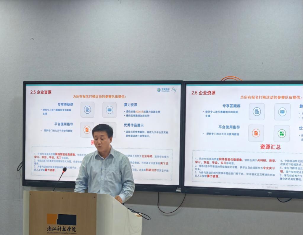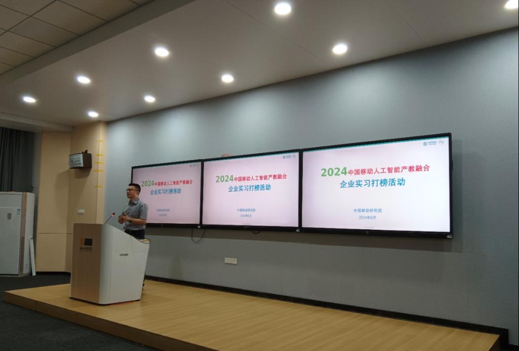 邀请合作企业中国移动(浙江)创新研究院来校召开2024中国移动人工智能产教融合企业实习打榜活动宣讲会, 100余位师生参与本次活动。