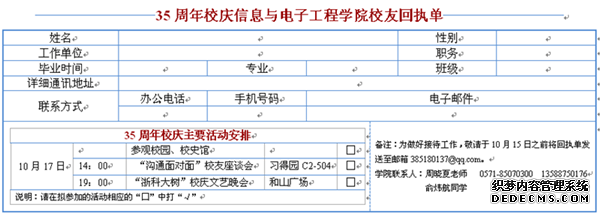 附件1:三十五周年校庆信息与电子工程学院回执单(word版)