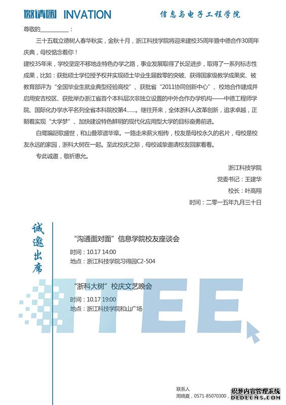 上一篇:浙江科技学院庆祝建校35周年暨中德合作30周年活动指南